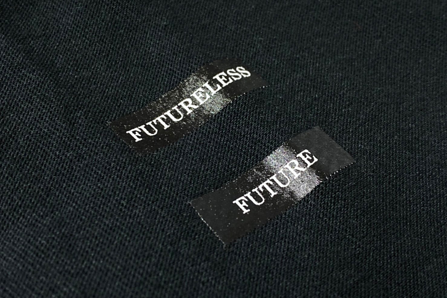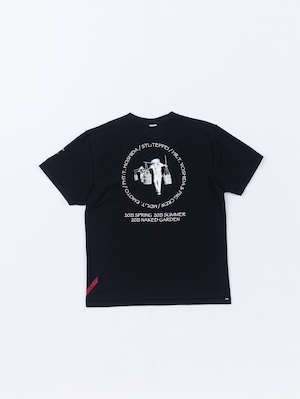 インサイドアウトのブランクボディを使用したプリントTeeです。“裸の庭”シーズンクレジットと単色のフォトプリント。袖にFutureless”と”Future”のデュオネームのプリントを施しています。
