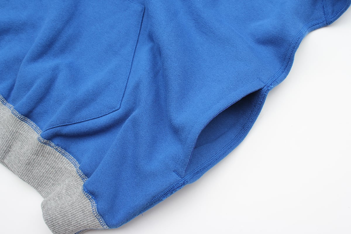 縫製の都合上、カンガルーポケットが大き過ぎるとシームポケットが浅くなってしまう、シームポケットを深くしすぎるとカンガルーポケットが不自然な小ささになってしまう為、一番ベストだと思う所に着地しました。