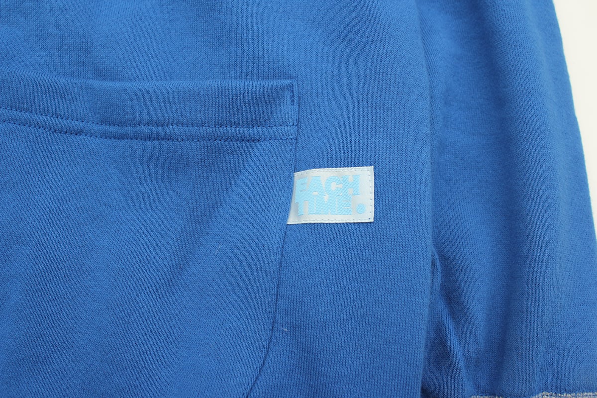首元の織りネームにはEACHTIME.のロゴは無く、後ろ身頃のポケットに取り付けられた織りネームにEACHTIME.のロゴが入っていたり、カンガルーポケットはただの飾りで使用不可、その代わりにシームポケットが両脇に備わっていたりと遊び心が詰まったアイテムになっています。