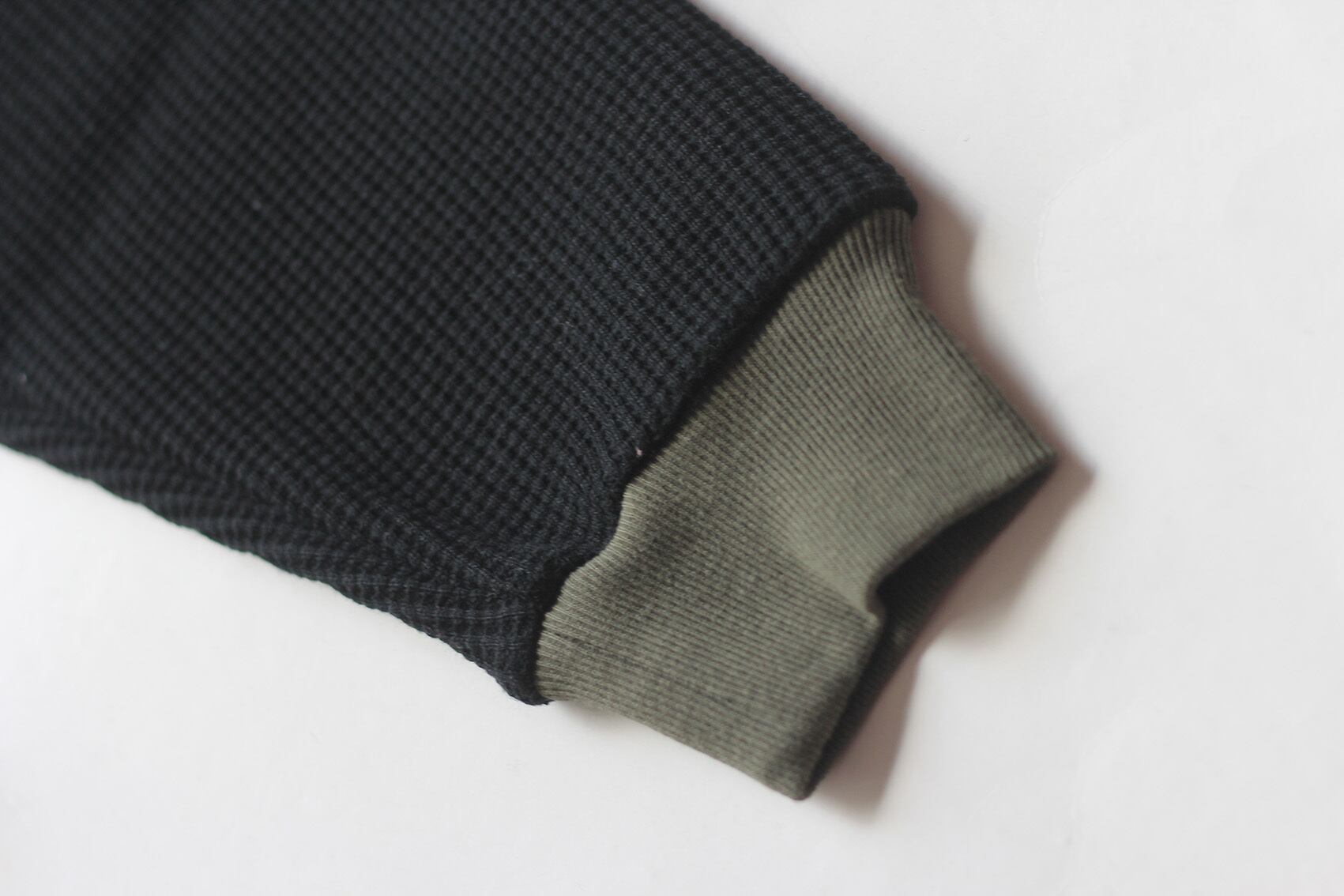 袖リブを配色仕上げ