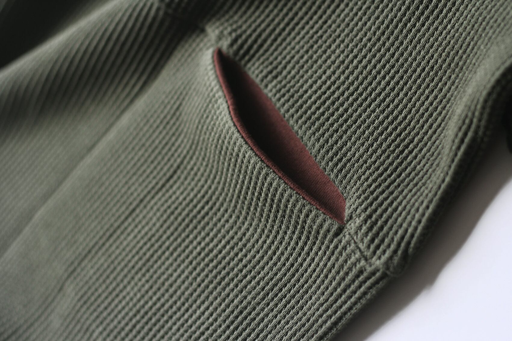 袖リブを配色仕上げ